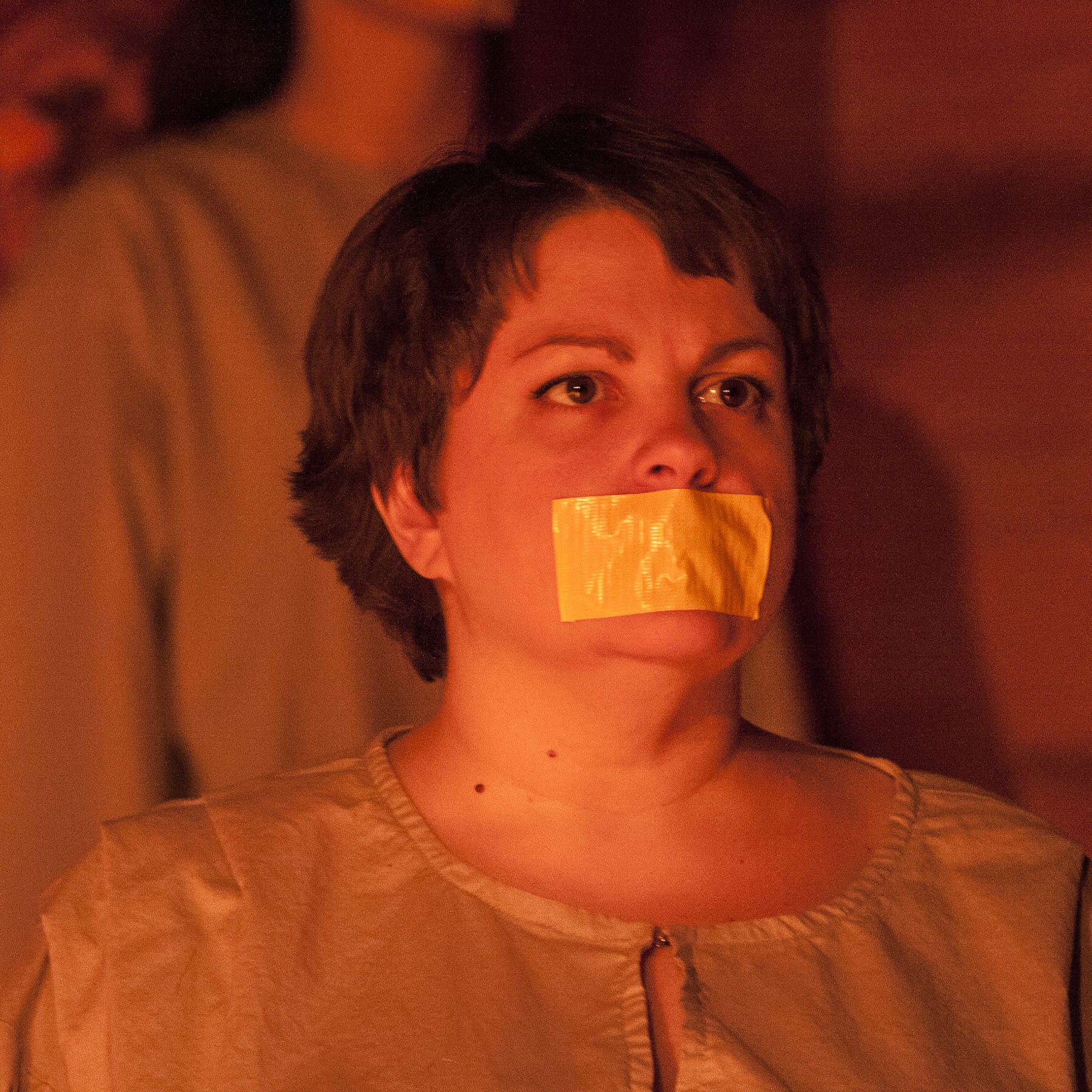 Vanessa Strickland gives a stellar emotional performance as Antigone, and her face tells the story of the hardship a sister must endure to bury her brother. Time and places change but the pain of war remains – and Strickland displays this to the audience flawlessly. The remaining members of the passionate, busy, and admirable cast are: Devin Gaither (Female Chorus #3), Ashley Hall (Female Chorus #2), Joe Jalette (Male Chorus #3), Karen Paone (Female Chorus #1), Reiner Prochaska (Male Chorus #1), and Bill Stitely (Male Chorus #2), and they work so well together.