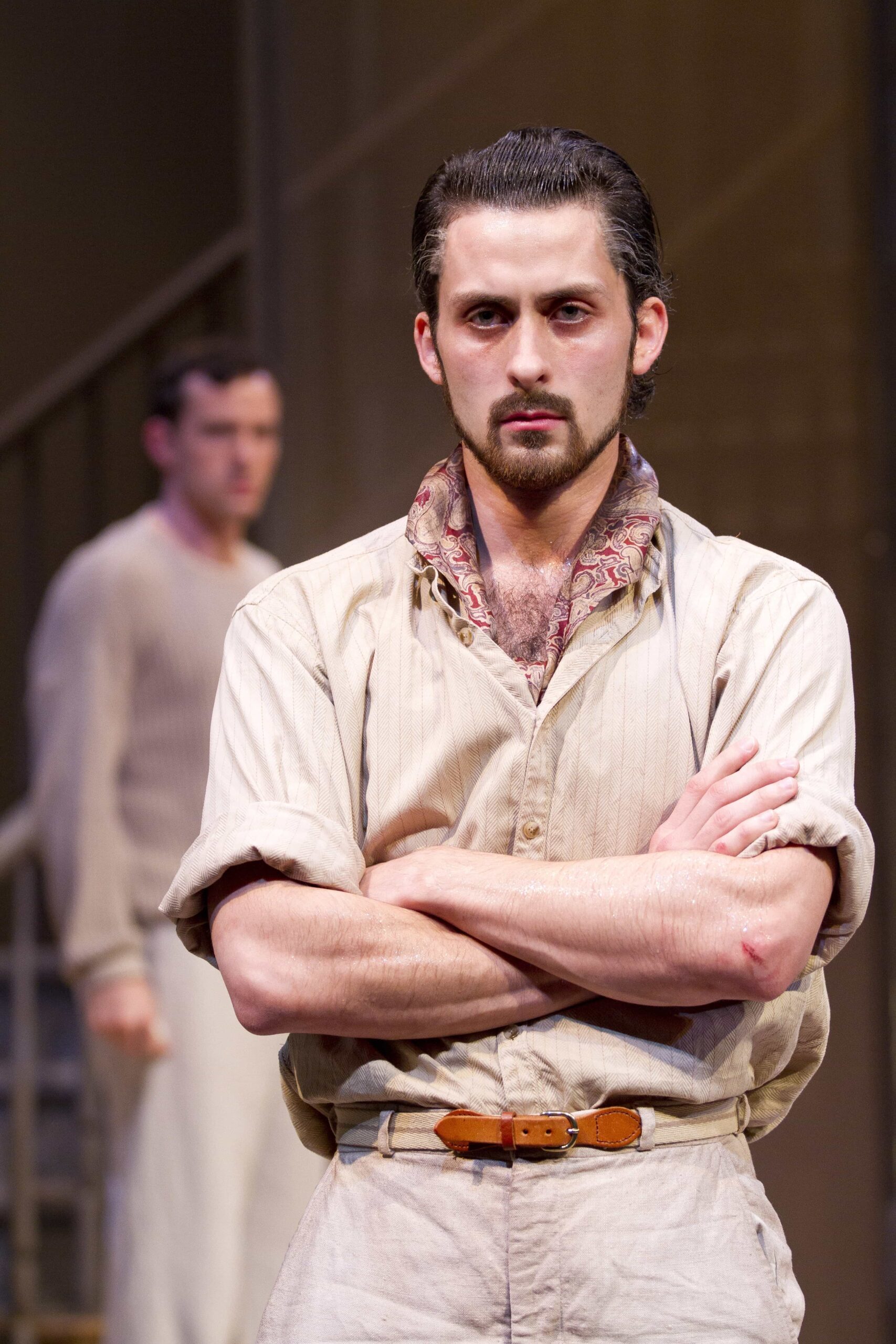 Despite all of their fighting they do seem to bond over one thing – Mary. Bean is particularly concerned and uses his quiet stand-offish stature to express this; of the four he uses his physicality to express his emotions the most rather than lying on the heavy text and transporting the audience into his emotional state with his words. Bean has a stunning scene late in Act II when he storms the stage roaring drunk, stumbling and blasting his voice at the top of his lungs, creating a more than convincing performance. His verbal outburst is electrifying as he attacks Edmund (Nathan Darrow) blaming him for their mother’s problems, confessing in agony that he has tried to corrupt him from the start. This quick blast of dramatic emotions is shocking as up until this point, save for a few verbal tussles with Goetz, Bean has managed to remain subdued and quiet.