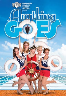 Anything Goes plays through June 24, 2012 at Annapolis Summer Garden Theatre – 143 Compromise Street, in Historic Waterfront of Annapolis, MD. For tickets, call the box office at (410) 268-9212, or purchase them online.