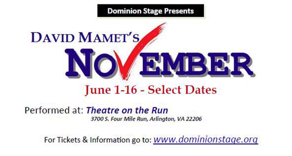 Dominion Stage’s presentation of November is a stellar example of great theater. It’s a win-win situation.