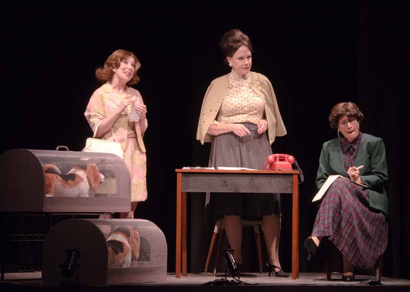 All the designing aspects of the production are highlighted with this scene. The wigs and makeup (Hannah Wolf and Robin Parker) and wardrobe (Rebecca Fischler) effectively set the tone with the perfectly detailed looks and feel of 1970. The sound effects and lighting designed by Ken and Patti Crowley – playfully bounce back and forth in unison – from one ringing phone to an actress answering the call, to another ringing phone and an actress juggling a call back and forth among the three – in a three way phone conversation.