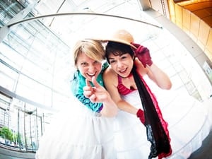 Cecily Marlborough and Gwendolyn Hamm (otherwise known as Karen Getz and Kelly A. Jennings) are two time-traveling cultural anthropologists here to study our culture. What you won’t really find in this production is a play, but two tangible characters who engage the audience in discussion. This means that this production relies mainly on audience participation – a tricky idea, as I’ve seen (many a time) actors who try to interact with an audience and are greeted with blank stares and awkward shifting-in-the-seats.