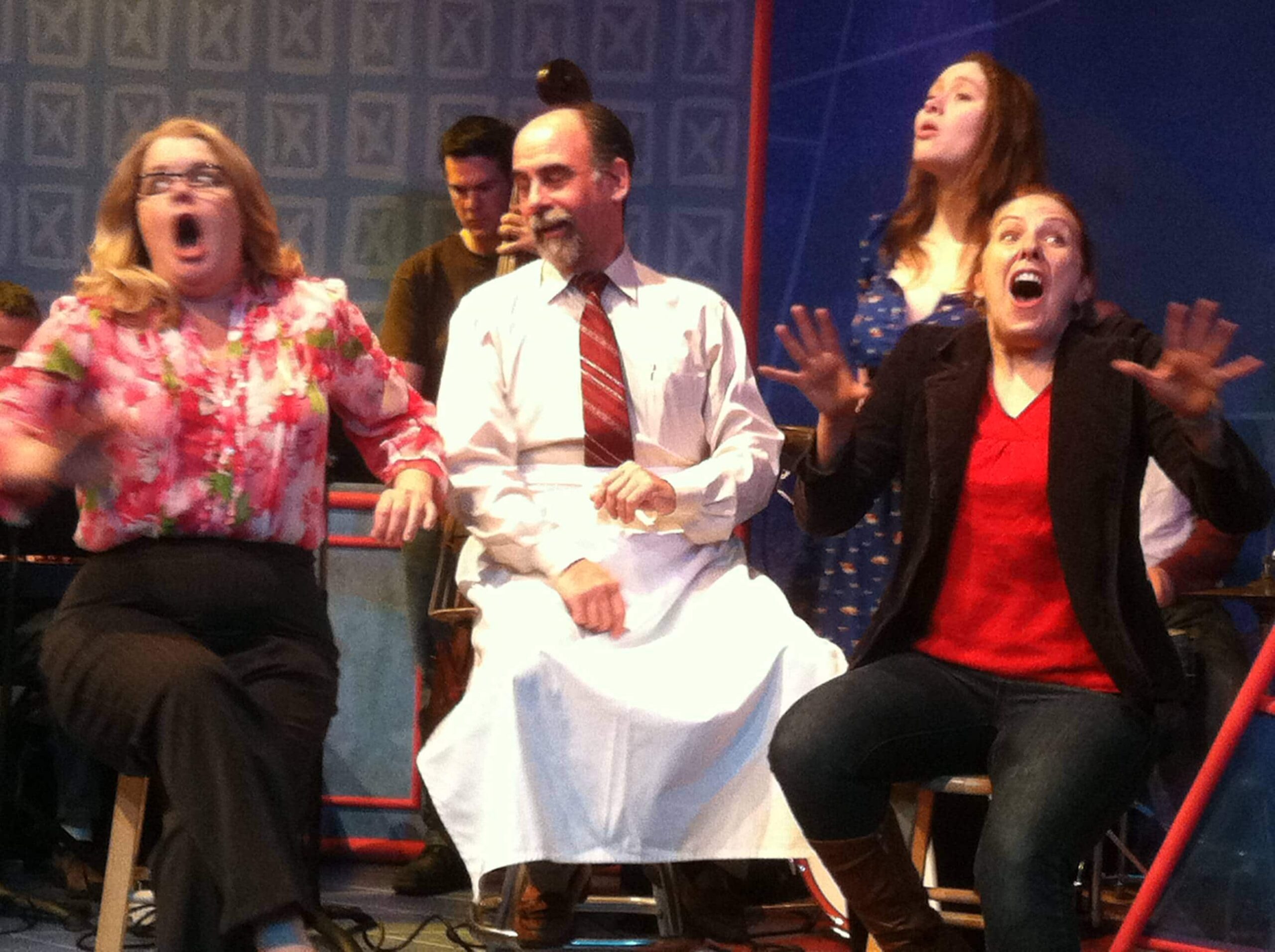 The talented cast includes Matthew Baughman, Renana Fox, Kristen Jepperson, Ken Kemp, Heather Bagnall Scheeler, and Luke Tudball. I particularly enjoyed the performances of Luke Tudball, Kristen Jepperson, and Ken Kemp. Luke Tudball, who directed the show, has wonderful energy and charisma, great resonance in his voice, and well-developed acting chops. Kristen Jepperson, who plays multiple roles, is consistently funny, and her musical abilities shine. Ken Kemp is very well cast as a vulnerable middle aged hopeful who still believes in love. Heather Bagnall Scheeler did a very nice job with “Imagine My Surprise,” as did Renana Fox, who delivered a touching performance of “Michael.”