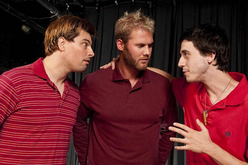 “Orestes: …this very night, I have eluded the Argives and gone to my father’s tomb.” Steve (Andrew Wilkin), Pylades (Alex Smith), and Orestes (Eric Boelsche). Photo courtesy of Mobtown Players.