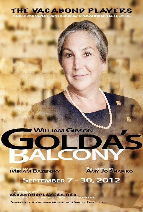 Golda’s Balcony plays through September 30, 2012 at Vagabond Players – 806 S. Broadway in the heart of Fells Point – in Baltimore, MD. For tickets, call the box office at (410) 563-9135, or purchase them online.