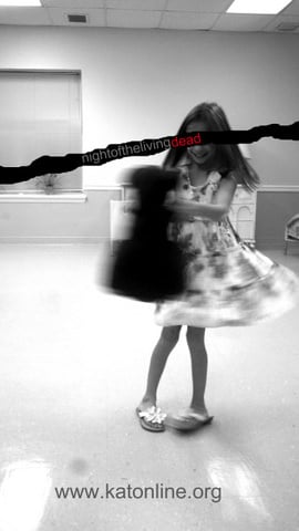 In putting this show together with my brilliant husband-to be, it was very clear that we wanted NO ZOMBIES in our show…having her there would be a zombie in the basement. After the NYC production, it was clear to me that there were issues with having an unseen and imaginary Karen. My brilliant Co-Director, Jenna Ballard and I had it out one night in my back yard, and eventually came to the agreement that having her there would be a good thing. Now I cannot envision this show without her. We have made her such a part of the show that the show doesn’t happen without the little girl turning the wheels.