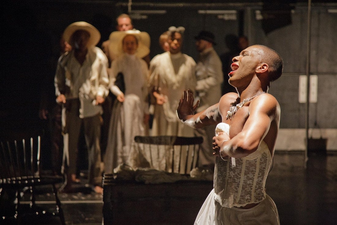 SHAPE begins at ‘Black America’ in Ambrose Park in Brooklyn (NYC) where 500 Black American performers attempted to teach the Northerners about their ‘wonderfully happy life’ on the Southern Plantation. And it’s a story of Billy (Frank Britton) and Cordelia McClain (Dane Figueroa Edidi) – two vaudevillians – whose songs and dances portrayed their toe-tapping happy life down South – a Stepin Fetchit existence.