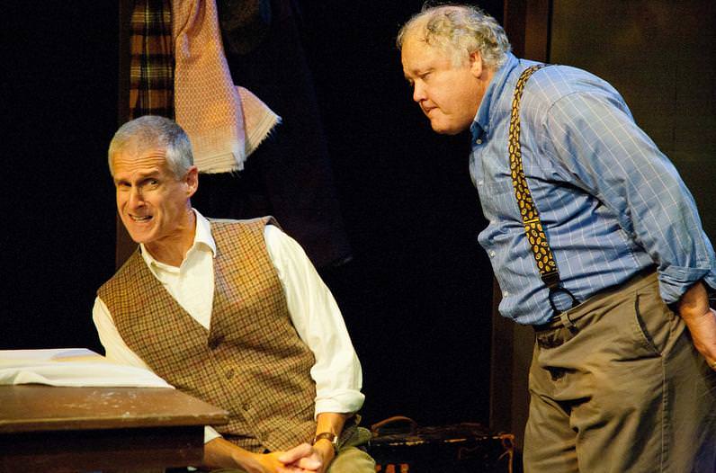 You take the high road and I’ll take the low road and we’ll meet at The Keegan Theatre for their production of A Couple of Blaguards. This two man show, Directed by Colin Smith, is a true Irish treat for the evening. Written by the literary greats Frank and Malachy McCourt, the show is strong brew of coffee flavored to the tune of Irish folk with songs and stories from the McCourt brother’s lives. Following their trials and tribulations starting back as young poverty-stricken youths in Limerick, Ireland right on up through their assimilation into American culture over in Brooklyn, New York; the story is charming, funny, and combines the McCourts’s well known sense of humor and wit with poignant moments of heartfelt emotion.