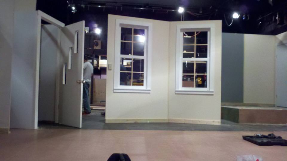 It is in its infancy, as far as completion and set decoration, but it is so exciting to see it start to really take shape. I love the size of the windows. I really love the front door, with its three peekaboo windows. As set furniture and set decoration are added, we will really get to see this house, this place. This is the place where our unlucky seven have spent eternity, pondering their actions on the last night of their lives. To see Tom and Judy’s little table where they make Molotov cocktails, or Ben’s door (as I call the front door) is like meeting other characters in the play. To walk down into Harry’s cellar and see the small window well near the top of the ceiling is a really cool touch.