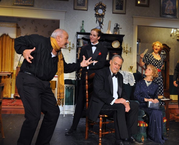John Coscia designed and constructed a set that resembles the interior of a lived-in home, complete with mismatched furniture, cluttered antiques, and a hodge-podge of assorted knick-knacks and trinkets. The result is not unlike waling into your grandmother’s sitting room. Sound Designers Chip and Barbara Gertzog use old-time music to help reflect the 1930s, as well as sound effects, including explosives and a coo-coo clock, and Technical Director Sarah Mournighan keeps the stage well-lit and avoids any mishaps. Another way the era is seen is through costumes by Robbie Snow, including belted house dresses, dated hairstyles, and even a character dressed as a full-on flapper.