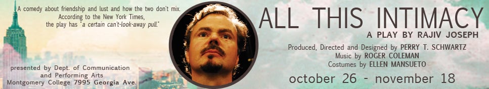 All This Intimacy plays through November 18, 2012 at Montgomery College’s Cultural Arts Center – 7995 Georgia Avenue, in Silver Spring, MD in Silver Spring in Theatre 2. For tickets, call the box office at (240)-567-5775, or purchase them online.