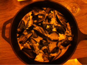 Our first night was spent at Mussel Bar, a Flemish gastro-pub where we found an edgy macho vibe, where Wiedmaier’s Harley Davidson is slung atop the room-length bar and chandeliers are cobbled together from rope and old bottles. Skull graffiti is carved in some of the tables. Skulls are very stylish this year and not on account of Halloween. Try the house private label Belgian beer, Antigoon, a crisp light ale that sports a graphic of a giant with severed hand. No cause for alarm. Brabo, the name of one of Wiedmaier’s Alexandria restos, is a much-revered hero from Belgian mythology.