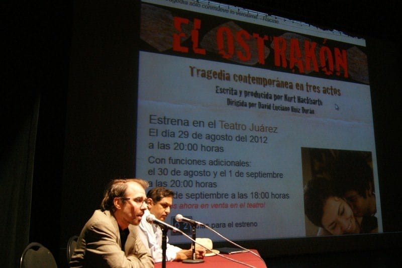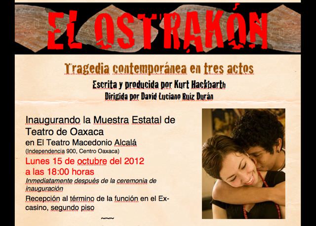 Oaxaca, a mid-sized town snuggled in a high mountain valley in southern Mexico, may have its challenges, as far as theater goes—its theater tradition and audience base are still developing and there are few, if any, play development opportunities along the lines of workshops or labs. But Hackbarth looks at the upside: “You can do things.” The first two plays he has ever written have been produced at the city’s best theaters. “In what other city would that ever happen?” he asks. He received a sizable government grant to produce his first play, La [Medio] Diezmada, and El Ostrakon was selected to headline the Oaxaca Theater Festival.