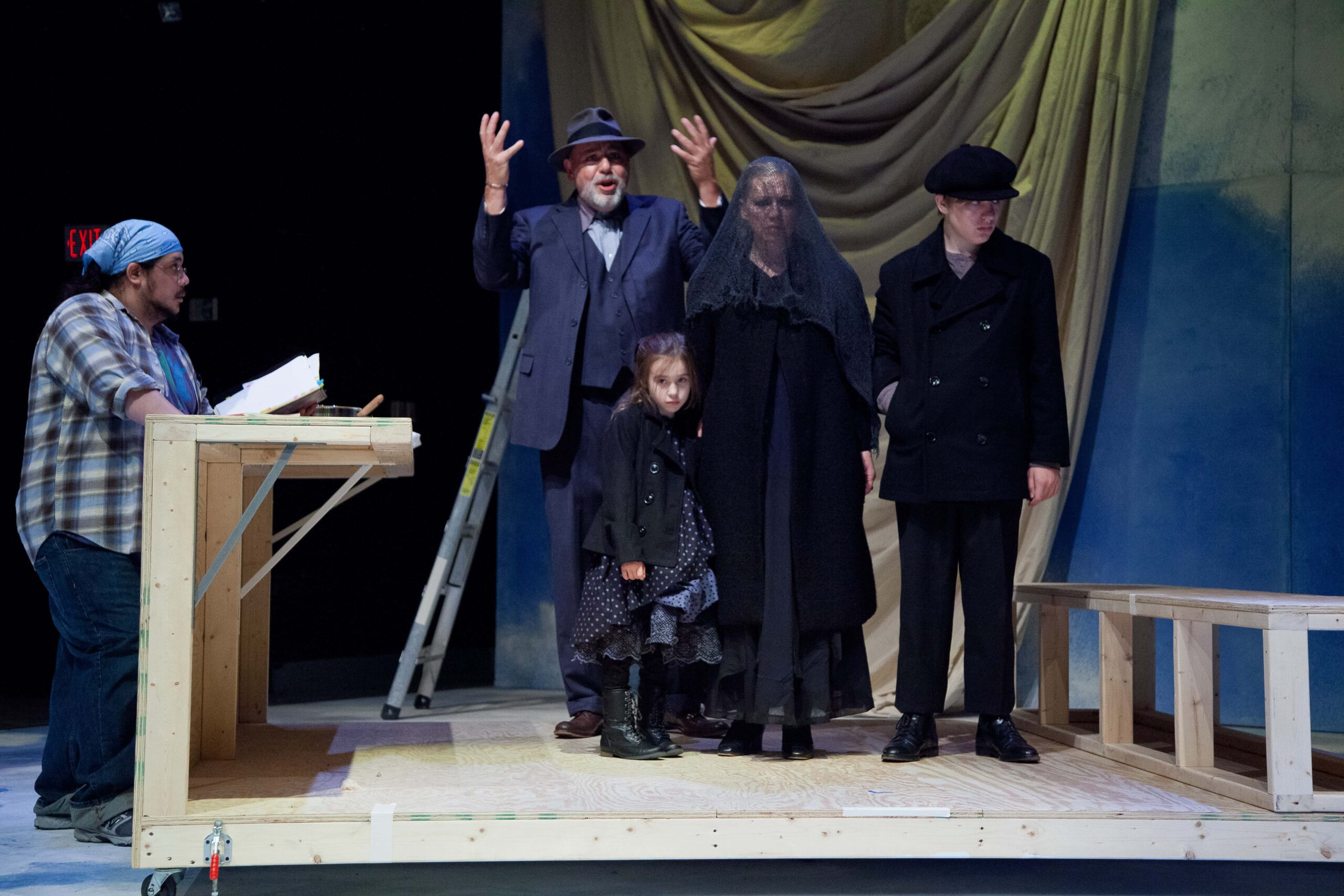 The casting is a family affair as Brian Hemmingsen (“Father”) and Nanna Ingvarsson (“Mother”) perform alongside their real-life son, Sebastian Ingvarsson-Hemmingsen, who plays the young “Boy.” Hemmingsen displays a wide range of affect as a man alternatively self-confident, guilt-ridden, and ashamed. Sara Barker plays the “Stepdaughter” with tremendous rage, indignation, and anger. Nanna Ingvarsson is powerful and heart-breaking as the discarded and mourning Mother. All our attention goes to her whenever she is on the stage.Joshua Dick plays the “Son,” who adamantly doesn’t want to be there. Jon Jon Johnson not only plays the “Stage Manager,” but he is also the production’s Assistant Stage Manager. Bruce Alan Rauscher plays the frustrated Director with great energy.