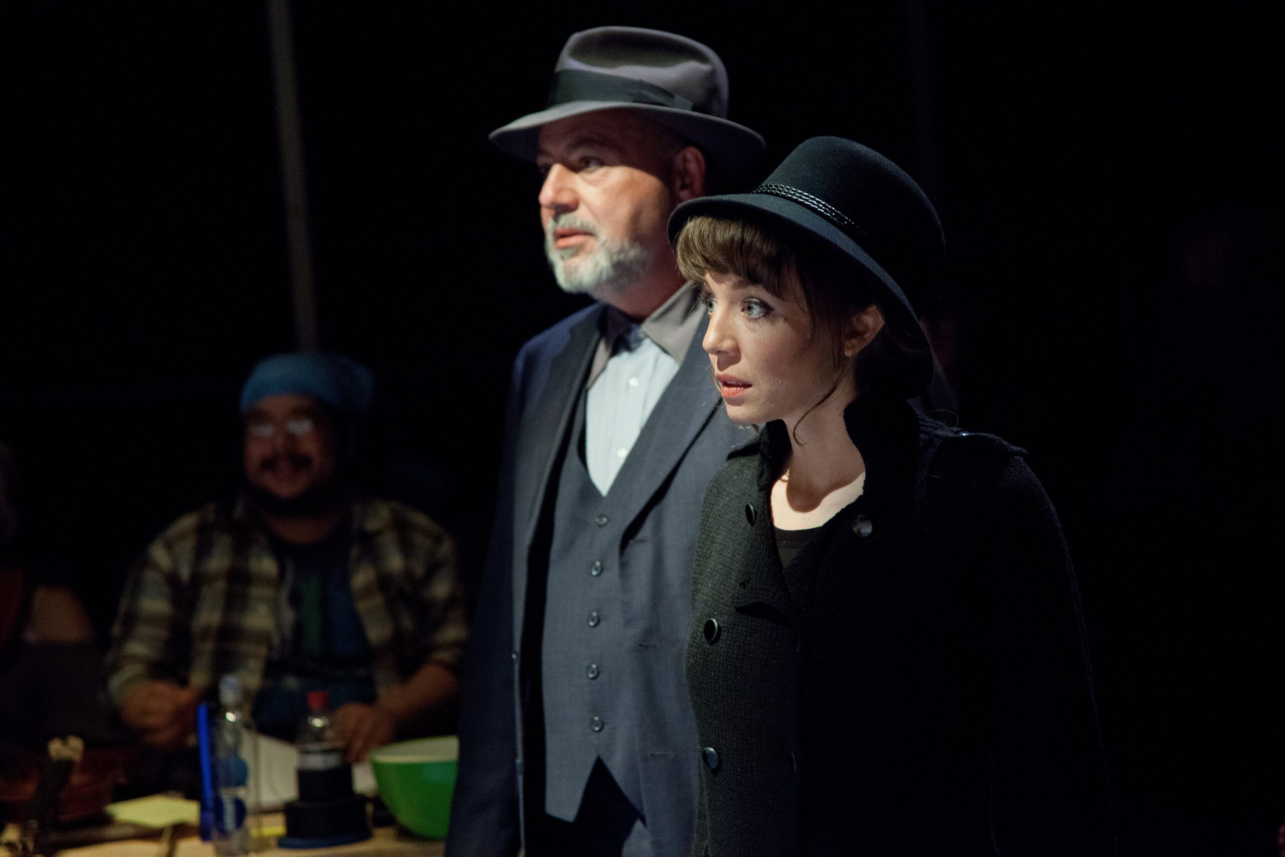 The Father (Brian Hemmingsen) is the leading spokesman for the six “characters,” and the one most intensely struggling to be understood. The Stepdaughter (Sara Barker) and the Father, according to Pirandello are the “most eager to live” and the “most fully conscious of being characters, as well as the “most intensely alive. The Mother (Nanna Ingvarsson) is “not aware of being a character…not even for a single moment, detached from her ‘part.” Madame Pace (Liz Dutton)” must play her part as a caricature, with bizarre makeup, outlandish wig and garish clothing. The “characters” are passionate, displaying resentment, shame, grief and despair. Meanwhile the actors have limited lines, ironic points of view, and have none of the memorable qualities of the “characters.” Tom Prewitt (Director) has effectively staged this surreal story (and sometimes confusing dialogue) in a way that encourages the audience to persist and for 90 minutes, I was fully immersed in the production.
