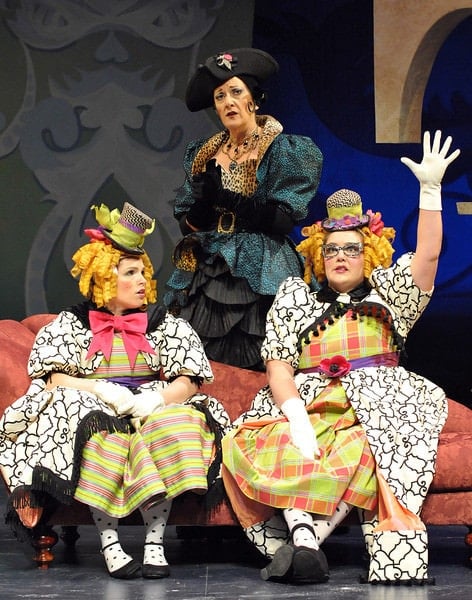 Opposite the royal family is the not so royal family, in fact the step-family. Headed by Stepmother (Donna Migliaccio) and filled out with the glazed ham show stealers Joy (Jamie Kelton) and Grace (Tracy Lynn Olivera). Migliaccio masters the haughty airs of a cruel stepmother who knows her own daughters share the IQ of a pumpkin, her exasperation with them never ceasing to amuse all who watch. And her flirtations with the royal steward are slinky and terrifying all in one go.