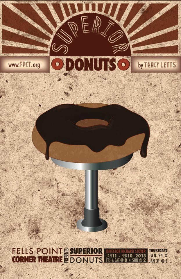 A family run donut shop 60-years in the running, and a street savvy kid with great ideas and a great gambling debt. The zoned out hippy draft dodger who runs the store is the last person you would expect to befriend the troubled youth with spunk in his soul, but the relationship between these two unlikely characters is the catalyst for an incredible story rich with humor and an amazing story from Pulitzer Prize-winning playwright Tracey Letts. Fells Point Corner Theatre is proud to present Superior Donuts as the start to the 2013 new year. Directed by Richard Dean Stover, this production is the perfect balance of life lessons mixed with humor and pleasure, and donuts.