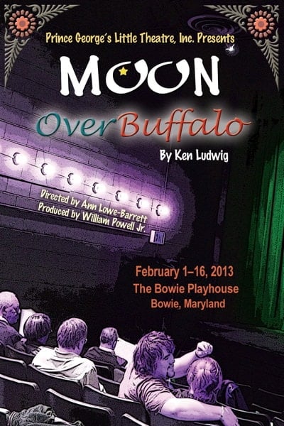 Moon Over Buffalo plays through February 16, 2013 at The Bowie Playhouse in White Marsh Park -16500 White Marsh Park Drive, in Bowie, MD. For tickets, call the box office at (301) 937-7458, or purchase them online.