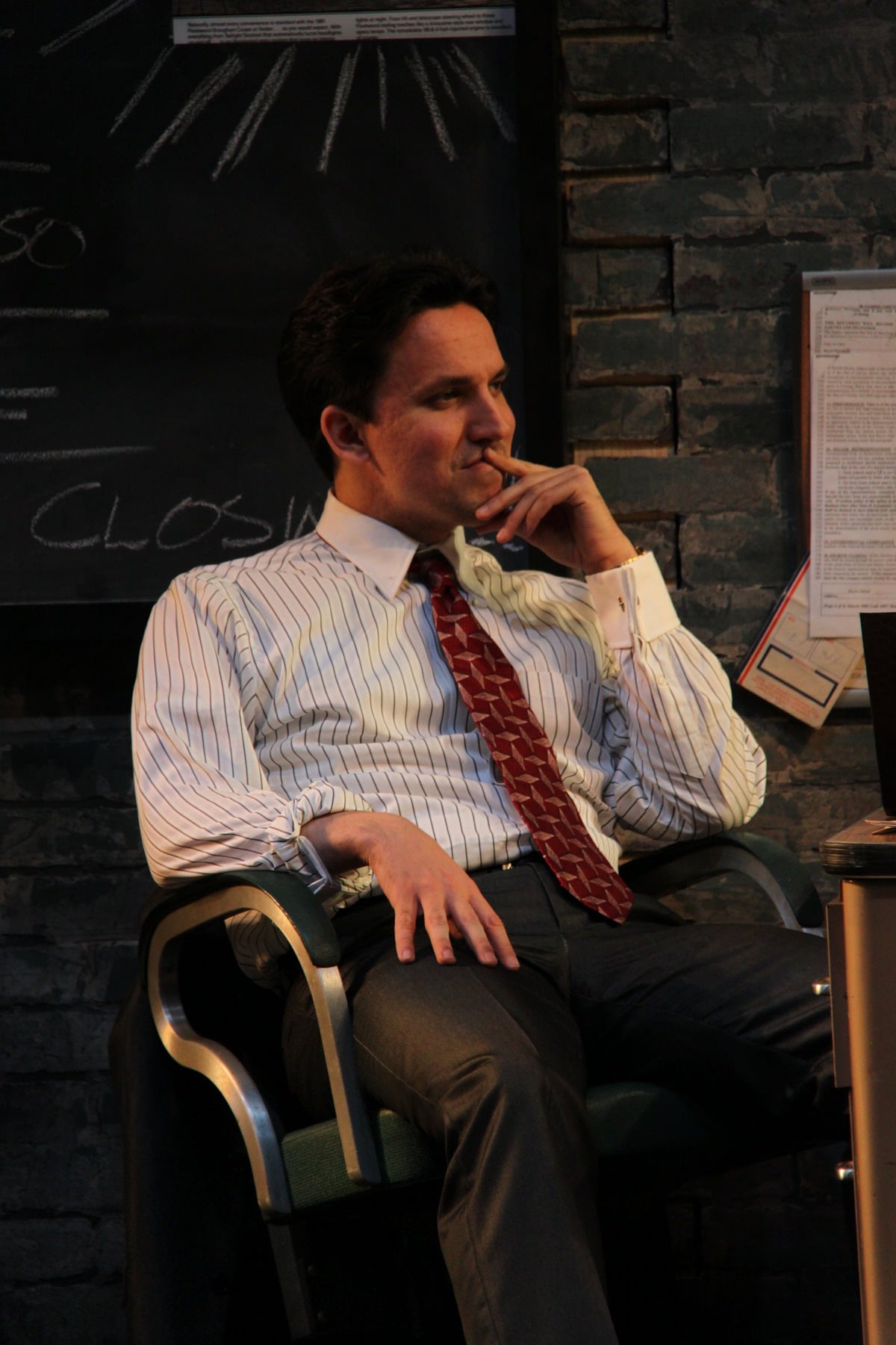 Alexander: I play Richard Roma. Mamet writes characters that are very immediate, they spend very little time reminiscing or thinking through their actions, so rehearsal was about learning to be less considered and more impulsive.