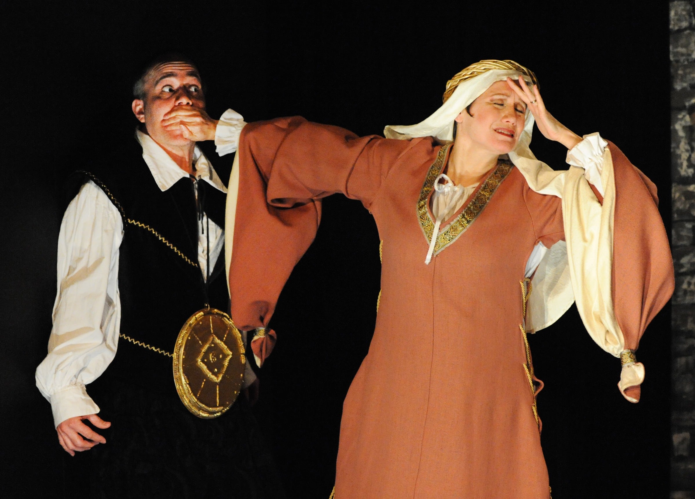 Everyone adapts to their assigned role in the first performance, everyone of course except for Steve Carpenter who is playing ‘George Spelvin,’ the man in the nightmare who doesn’t know his lines. Carpenter gives us a great deal of accidental comedy by timing his lines just so to land epic lines that sound unintentional but really showcase his knowledge of how to make an awkward situation hilarious. His nervous approach to the role exudes genuine panic; relating to the audience the exact feelings of anxiety we see clearly written across his face. He finds impeccable (and intentional) comic timing when he’s chasing through spotlights that won’t leave him alone, the zinger of show delivered with gumption as he screams Lady M’s famous line up at said light.