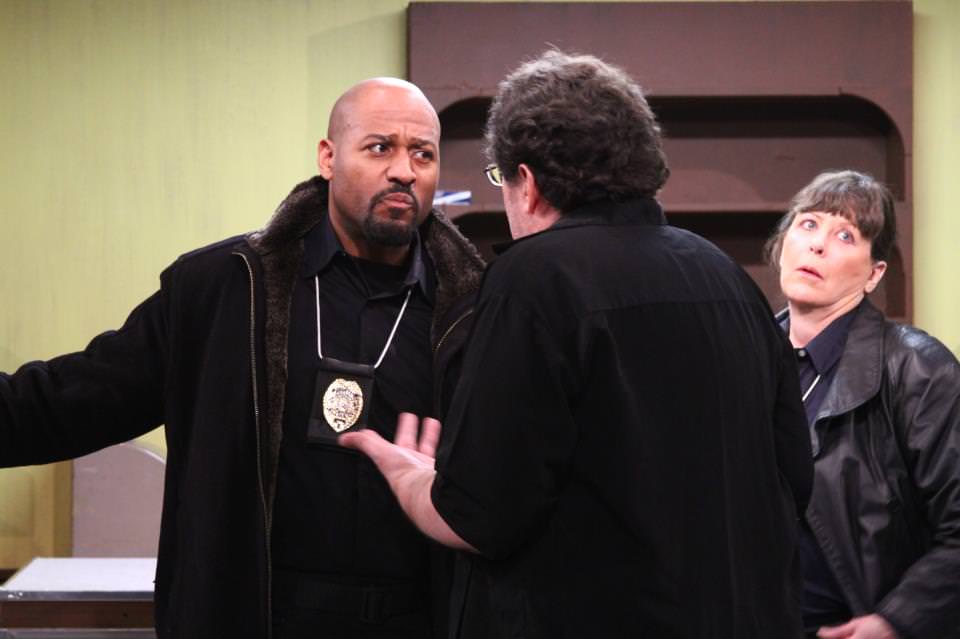 Officer James (Christopher Martin Dinwiddie) Max (George Tamerlani) and Officer Randy (Michelle Trout). Photo courtesy of The Greenbelt Arts Center.