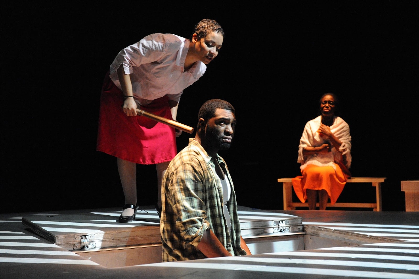 What also contributes greatly to making this play so engaging and watchable is the fluid ease of Felicia Curry (Woman One, Patti Mae) and Fatima Quander (Woman Two) as they step in out of the multiple characters they play revealing emotional finesse, distinction, and energized spunk. Their rhythmic and melodic singing in key transition moments and poignant segues of deeply felt hymns and harmonizing tones are soothing, feel-goodness for the soul. Boutté, also a composer and the musical director for Home, has provided original music for the transitions and any text that invited singing, and the music maintains a bluesy back drop for the production.
