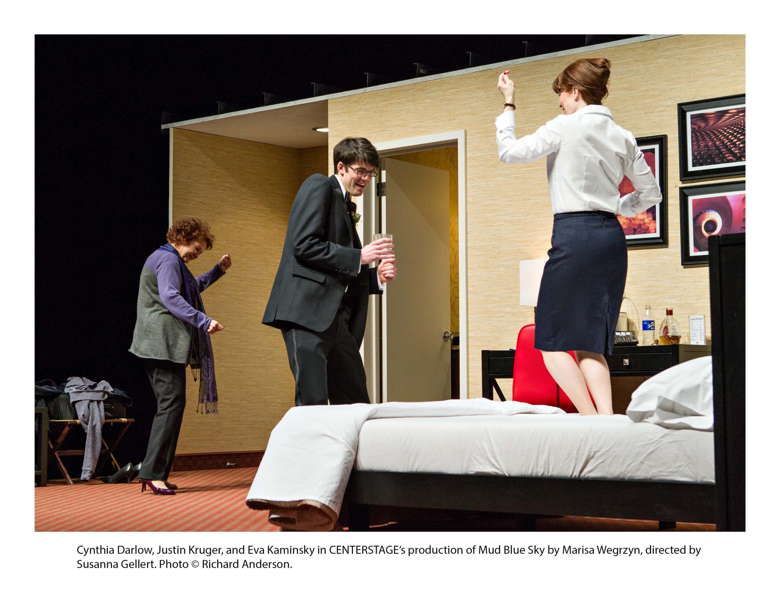 Tender compassion and wicked wit come to CENTERSTAGE as the world premier of Marisa Wegrzyn’s Mud Blue Sky rounds out the remainder of their 50th Anniversary Season. In this funny new play by Wegrzyn, three flight attendants spend one night in a hotel room along with a rather unusual companion. Along the way they discuss and discover the topics of motherhood, work, missed connections, new opportunities, and prom night with an edgy sense of situational humor that engages the mind and indulges the senses. Directed by Susannah Gellert, this production blends the perfect amount of humor for entertainment’s sake with deep truthful meaning about life allowing the audience to substance beneath the humorous banter that occurs.