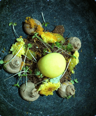 Ambar does not treat dessert as an afterthought. They have a pastry chef who trained in kitchens throughout Europe. The most unusual dessert is the Forest Gnocchi. Dazzlingly presented in an earthenware bowl that weighs as much as a bocce ball, its separate components consist of chocolate mousse, bitter orange cake, ground chocolate, orange gelee, tarragon gnocchi, and passion fruit espuma. The unusual dessert, pretty as a medieval garden, is then stirred up with black tea sauce.