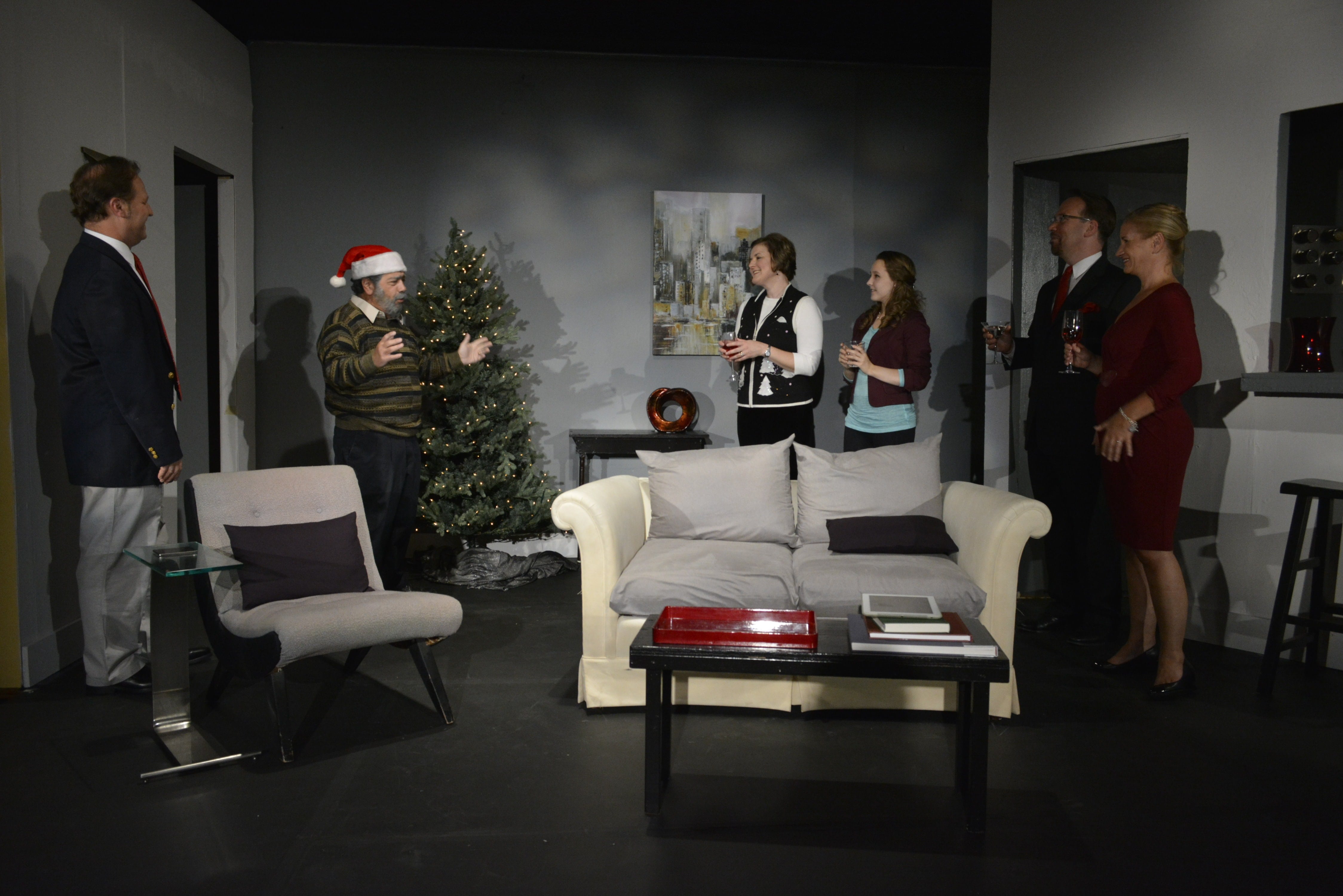 Klores and McDonnell are quite believable as a long-time married couple who decided years ago to never have children. The two actors are so comfortable with one another and we want to cheer as Drew defends his wife. Stone and Pagnard’s characters have a different kind of relationship but again the actors work well together. Pagnard, in her Christmas sweater, is clearly the most stalwart of the two. Stone just begins to hint at a vulnerability that will be further developed throughout the show.