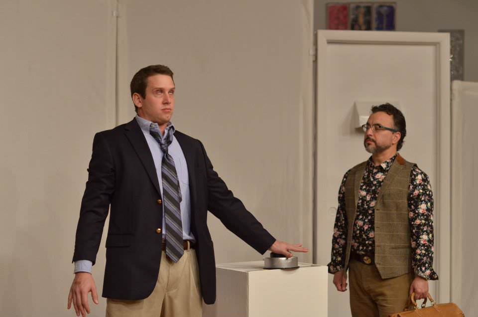 The three principle characters are already inside the mysterious white room when the lights come up. No mention is made of how they came to be there. Ms. White, who is played by Jessica Ruth Baker with a Tilda Swinton-esque flair, speaks first. She informs the other two occupants of the room that she is a former child genius who specializes in nanotechnology. Ms. White reveals that contained inside her metal briefcase is the fruit of her labors, a mysterious device that both “converts and transforms”.