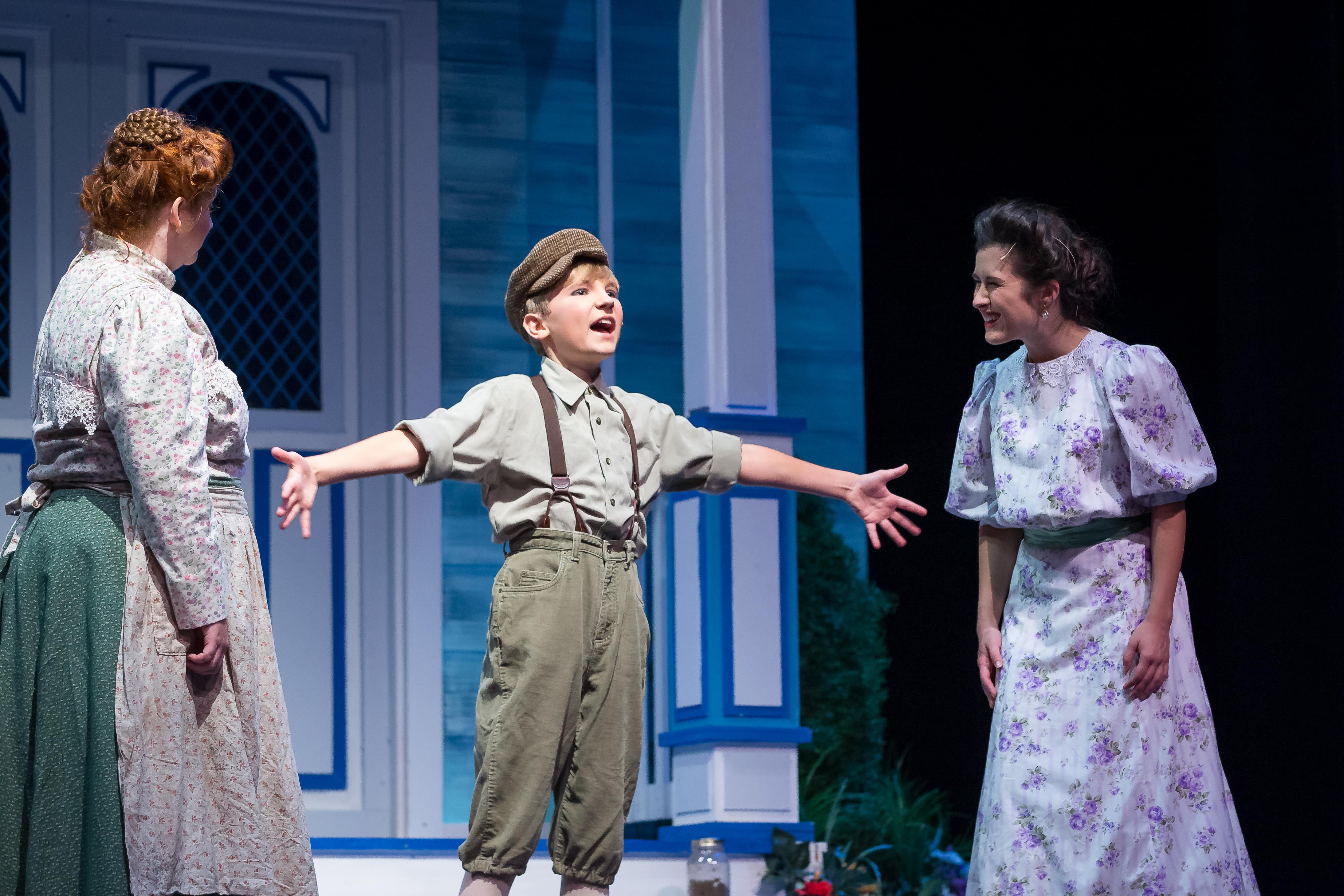The crowd-pleasing, scene-stealing, unmitigated joy in this show comes from the appearance of the talented children and teens in this cast. Tyson Francis delivers a heart-rending performance as Winthrop, and his believable stammering yields an emotional punch in “Wells Fargo Wagon” and “Gary Indiana.”