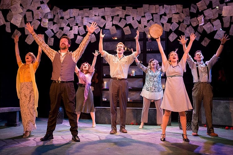 Published in 1915, Edgar Lee Masters’ Spoon River Anthology – a collection of free-verse poems in which the deceased residents of a fictional rural town in Illinois recount episodes from their lives and impart the values of their society – provided the inspiration for the new musical homage Return to Spoon River by Martin Tackel (who, like Masters, had a long professional career as a lawyer). Presented by Creative Arts Lab and directed by Gwen Arment in the intimate space of The Lion Theatre at Theatre Row, the show presents an old-fashioned, nostalgic, moralizing slice of mid-western small-town Americana, conveyed through the accounts of multiple characters and remembered by Ham Greene and Julia Kessler, two former inhabitants who meet in the local cemetery.