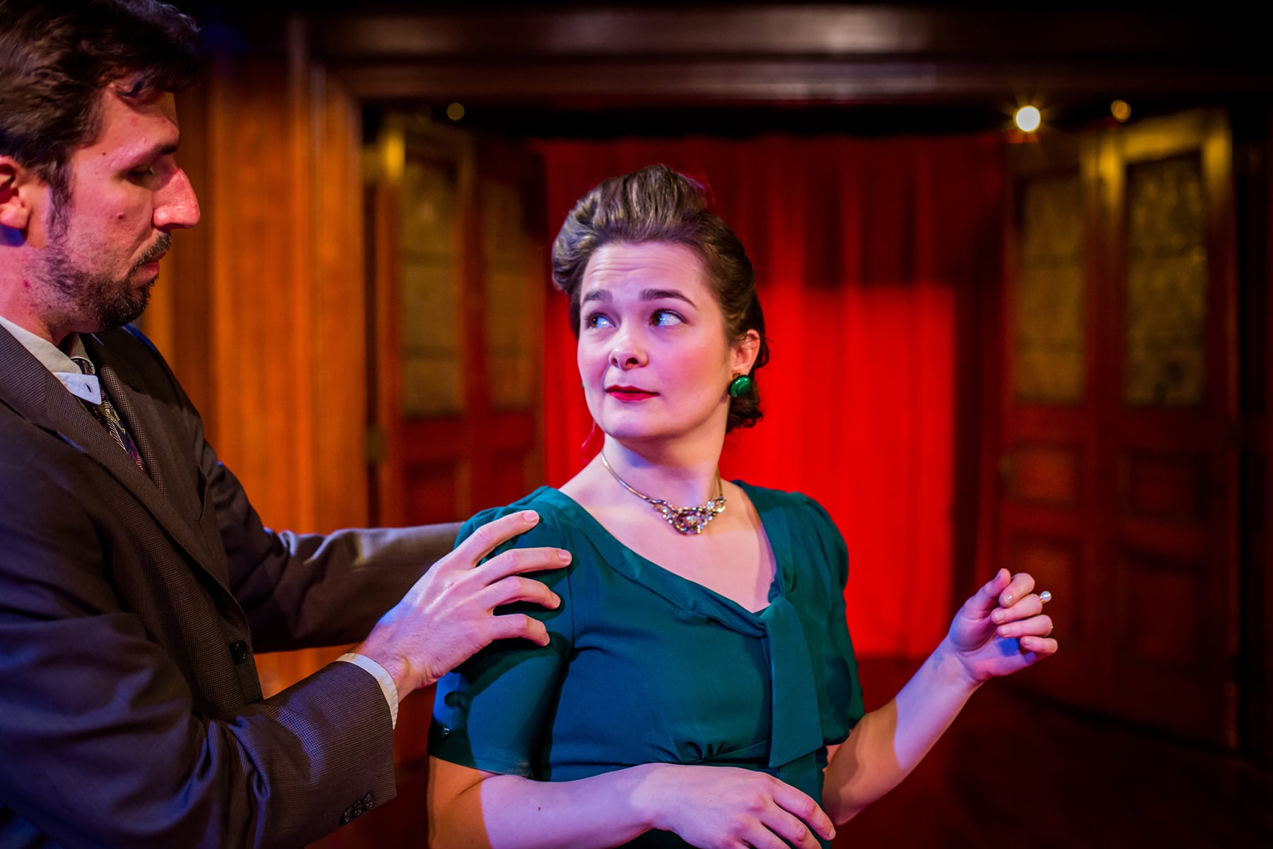 Sound Designer, Composer, and Cellist Stefán Örn Arnarson underscores the dramatic tension of the story with his expressive music. Noir-inspired costumes by Katherine Fritz, props by Scott McMaster, and lighting by Robert Thorpe and James Lewis evoke the style of ‘40s films while distinguishing between the characters’ reality, dreams, and ghostly visions, and choreography by Michael Cosenza, including a close-up swordfight and some deadly uses for a Bible and a crucifix, is harrowing and inventive.