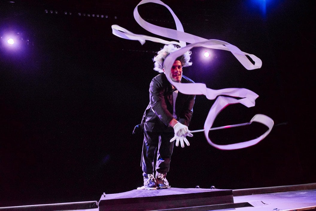 In My Funny Bone, the latest offering from Brian Sanders’ JUNK, the boundary-breaking choreographer/dancer traces the evolution of his, let’s say, “eccentric” sense of humor from childhood to the present in a revue-style show of sixteen irreverent vignettes that, as a whole, are decidedly not for all ages. If you’re easily (or even not so easily) offended by acerbic, salacious, and scatological humor, you might want to take a pass on this one. But if you appreciate over-the-top no-holds-barred physical expression that ranges from the satirical to the off-color, the risqué to the full-out raunchy, this is the show for you!