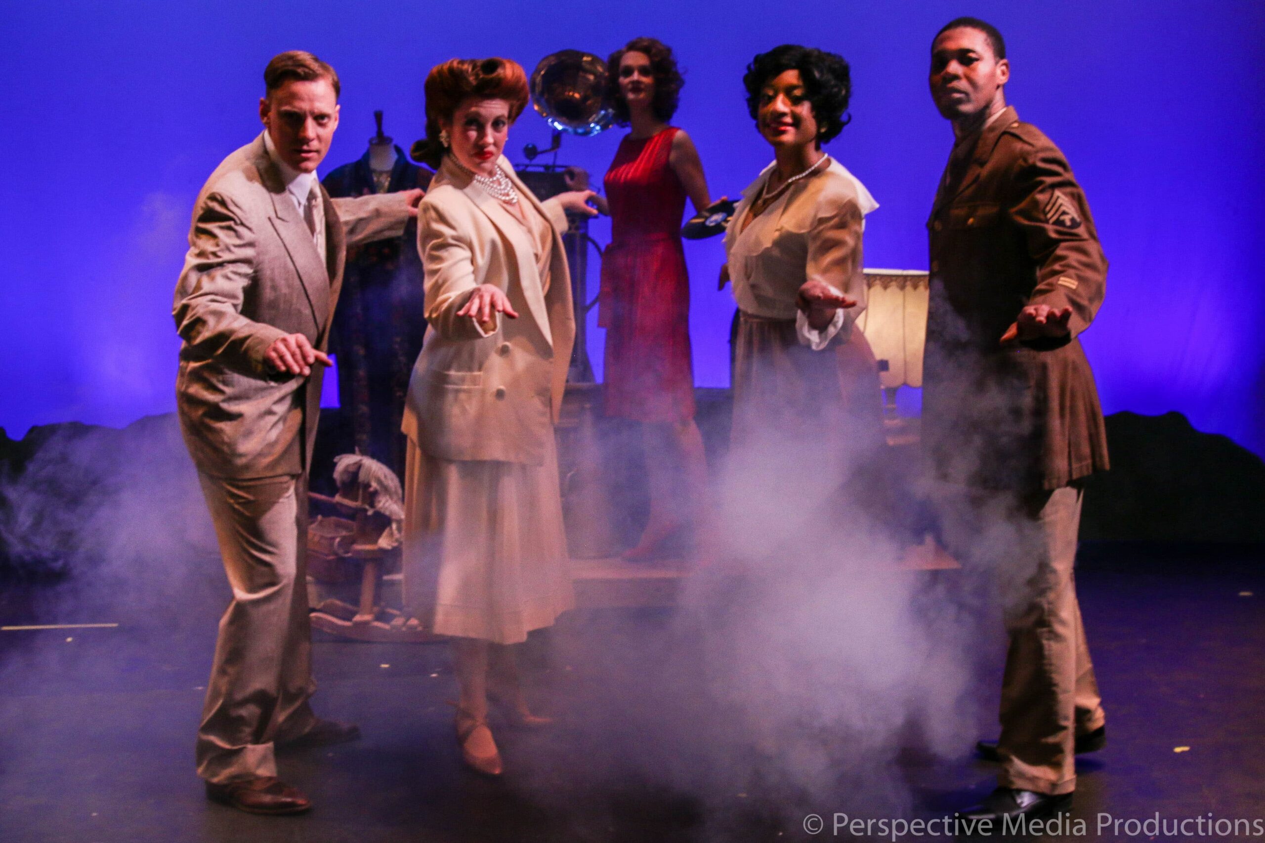 The familiar songs are strung together by a narrative conceit, in which a young woman – the Dreamer, played by Jennifer Zellers – takes refuge in an attic filled with memorabilia to escape the noise of today’s world and the reality of a troubled relationship. As she sifts through the array of personal artifacts (including an old Victrola), they trigger episodic reminiscences and visions related to the lyrics of popular music from the past. Performed by Zellers and an ensemble of four who personify her Dreams – Terrance Hart, Abia Johnson, Nicky O’Neal, and Natasha Truitt – the numbers are accompanied by period-style choreography (by Zellers, Peter John Rios, and Grant Prickett) and a live three-piece band (Maier on keyboard, Stan Davis Jr. on bass, and Derrick Banks on drums).