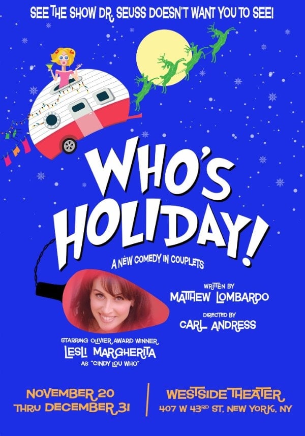 Who’s Holiday! plays through Sunday, December 31, 2017, at Westside Theatre – 407 West 43rd Street, NYC. For tickets, call (212) 239-6200, or purchase them online.