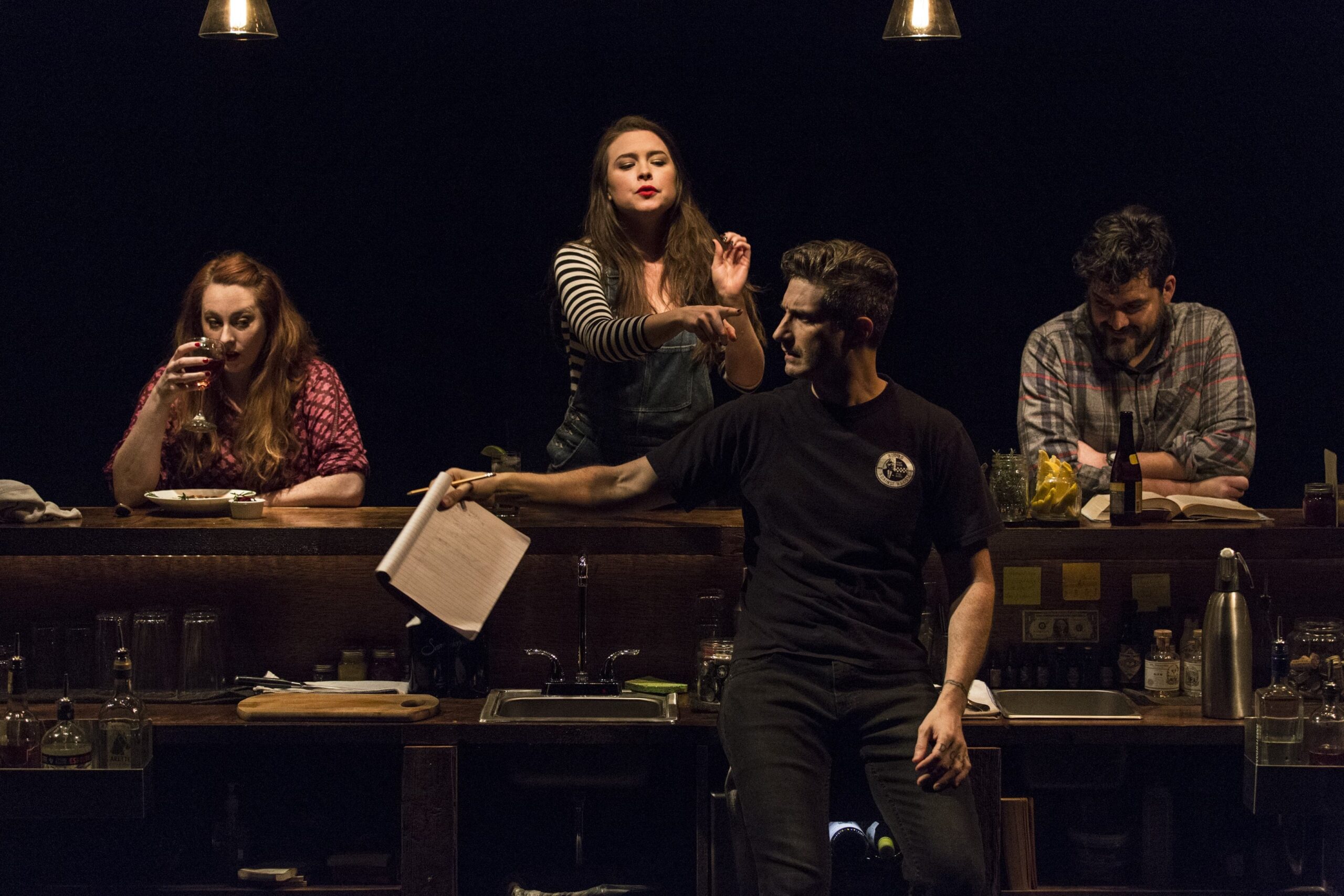 Now in its impressive Off-Broadway premiere at WP Theater in association with New Georges, following a critically-acclaimed run in the 2017 Exponential Festival at The Bushwick Starr (co-presenter of the current production), [PORTO] is an incisively clever, extremely funny, and imaginatively surreal rom-com by the Obie Award-winning team of Playwright Kate Benson and Director Lee Sunday Evans. Set in a present-day gentrifying neighborhood in Brooklyn, where the eponymous woman is a regular at a local “bouchey” bar (you’ll have to go to find out what that apropos mash-up of adjectives means), the highly-inventive work is a spot-on send-up of trendy Gen Y stereotypes, contemporary pressures of requisite behavior and taste, and ingrained feminist principles that make looking for love even more difficult than it already is for a post-modern female.