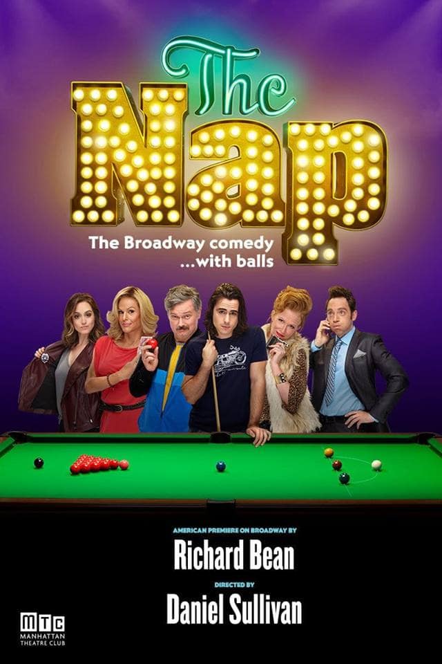 In the cue game of snooker, the British version of pool, the nap refers to the rough-surface direction of the fabric covering the table, which affects the path of the ball. In Richard Bean’s irreverent comedy The Nap, now in its American premiere on Broadway at the Manhattan Theatre Club’s Samuel J. Friedman Theatre, it also applies to the rough underbelly of gambling and game-fixing, and to the outrageously underhanded activities of the fictional competitor’s disreputable extended family, which could have a disastrous effect on his rising career.