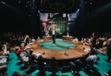 Richard III plays through Sunday, July 17, 2022, at Free Shakespeare in the Park, performing at the Delacorte Theater, Central Park West at 81st Street, NYC. For information on how to access free tickets, distributed in a variety of ways, go online. Everyone must show proof of COVID-19 vaccination and a photo ID to enter; masks are not required but recommended.