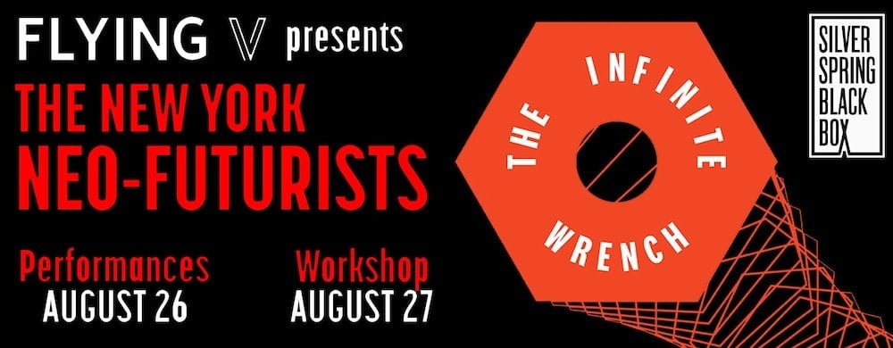 Flying V will host the New York Neo-Futurists at the Silver Spring Black Box Theatre on the weekend of August 26, 2022. The residency will include two productions of the Neo-Futurists’ The Infinite Wrench and one 3-hour workshop for arts creators entitled The Basics of Neo-Futurism.