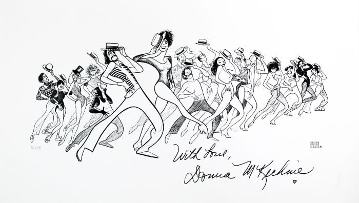 According to David Leopold, the Creative Director of the Al Hirschfeld Foundation, “For years, Hirschfeld admirers have asked for these images to be published as prints. Having the performers, who felt honored to be drawn by The Line King, return the favor by signing these very limited editions is a tribute to how much Hirschfeld and Broadway Cares mean to this community.” He also noted, “This year we have ten Tony winners in the group. Some like Donna McKechnie in A Chorus Line, Michael Crawford in Phantom of the Opera, and Joel Grey in Cabaret are drawn in the roles they won their Tonys for. This is an incredible award-winning collection.”