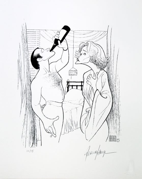 An online auction of twenty limited-edition numbered prints by legendary caricaturist and two-time Tony Award recipient Al Hirschfeld, hand-signed by the Broadway and Hollywood stars featured in them, is now open for bidding through Wednesday, May 22, to benefit Broadway Cares/Equity Fights AIDS (one of the nation’s leading industry-based nonprofit AIDS fundraising and grant-making organizations) and The Al Hirschfeld Foundation (with a mission of promoting interest in the theater and visual arts by supporting non-profit cultural institutions).