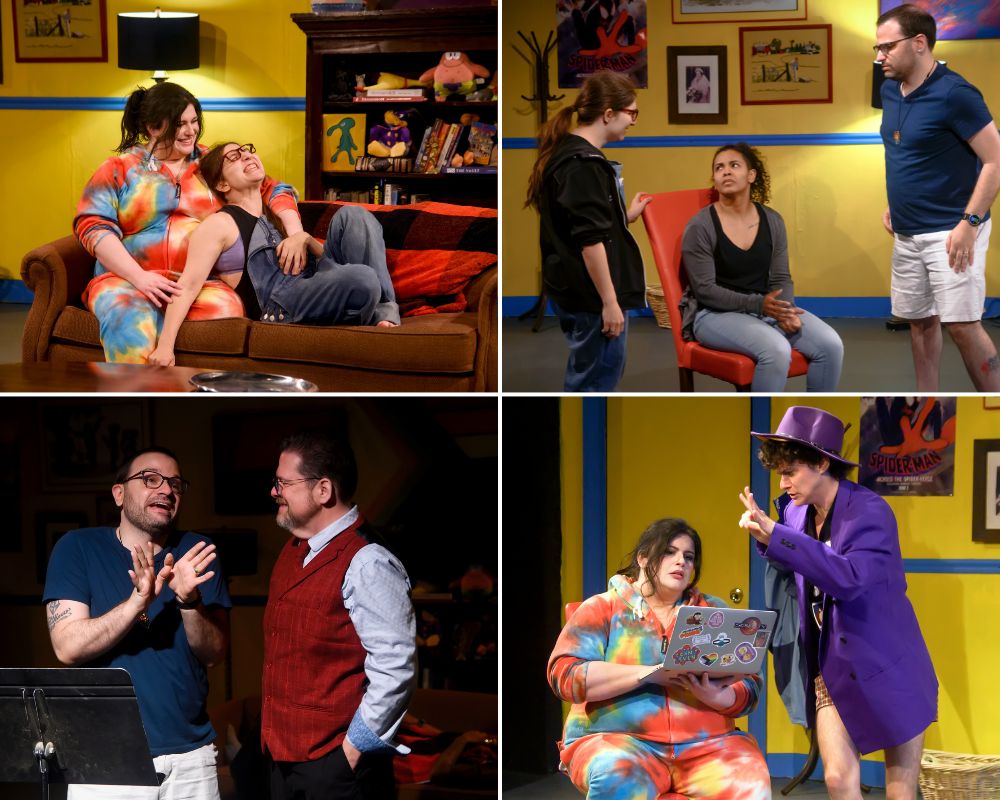 Keen direction by Nunzio keeps all the multilayered connections flowing, but it’s the actors’ ensemble work that shines. Daniel Brody as Ray is a hoot, nearly channeling actor Michael Urie with his sweet energetic delivery and mannerisms. Jillian Blair as Emerson is a no-nonsense bundle of strength who will launch into full-scale protector shielding her loved ones from hurtful comments. Michael Angeloni’s Sawyer and Jenny Oberholtzer as Avery are both level-headed and considerate, with reliable delivery — their characters anchor the sometimes emotional swirl that can occur despite the best intentions.