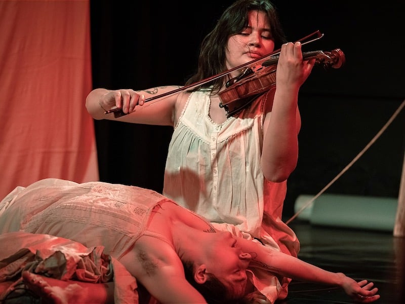 In A Good Woman, dancer/choreographer Nerissa Tunnessen and violinist/writer Samantha Xiao Cody craft an intimate portrait of Penelope through monologues, poetry, music, and movement. Tunnessen is a recent graduate of Vassar’s undergraduate history department, while Xiao Cody holds degrees in Physics and Creative Writing from Princeton University and is pursuing her MFA at the Iowa Writers’ Workshop. Together they penned the evocative script that tumbles forth with Penelope’s longing for her absent husband.
