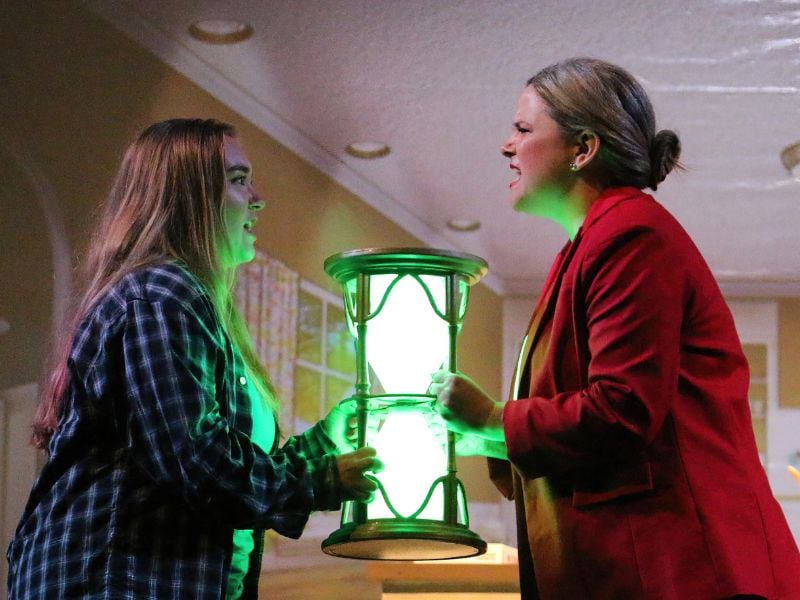 Freaky Friday the musical follows the story of an overloaded mother (Katherine) and her teenaged daughter (Ellie), who have lost touch with each other and through a series of songs, creative staging, and help from a magic hourglass, find each other magically switched into each other’s bodies. While trying to figure out what just happened, both characters are bombarded with each other’s lives and must try and fake their way through their jam-packed day so as not to arouse suspicions. While at first both fail hard trying to be the other person and screw up a few things, they slowly try to make up for their mistakes and learn more about their worlds in the process.