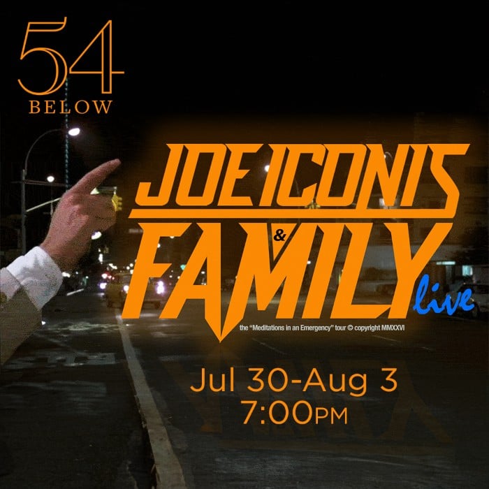 Joe Iconis & Family: Meditations in an Emergency plays through Saturday, August 3, 2024, 7 pm (doors open at 5:30) at 54 Below, 254 West 54th Street, cellar, NYC. For tickets (priced at $56.50-115.50, including fees, plus a $25 food/beverage minimum, per person), go online.