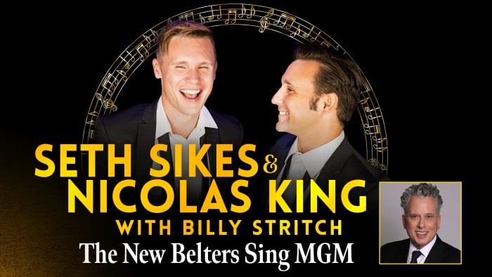 Seth Sikes and Nicolas King, both award-winning artists known for their smooth, swinging, blockbuster deliveries of classics from the Great American Songbook, have been touring the country with their concert The New Belters Sing MGM, the sequel edition of their New Belters cabaret act, which they debuted in 2022. On Friday, September 6, the duo made a one-night-only stop at 54 Below and, under the musical direction of Billy Stritch (whom King has known since the age of ten, when they met on stage at a Liza Minnelli concert), brought their updated vintage stylings, dazzling vocals, perfect harmonies, and upbeat camaraderie to a set list of fourteen numbers, half of which were jampacked medleys, covering an array of their favorite hits from the Golden Age of Hollywood.