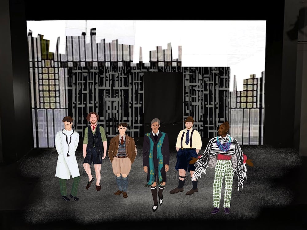 Our design team — especially set designer Ethan Sinnott and co-costume designers Rakell Foye and Yvette Pino — had this idea that our version of Cradle is set in 1930s, but also we want these people to look like 2024. So there’s a mashup of 1930s and very contemporary. We want this to feel like us today so we could see these people now.