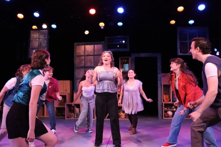 Olivia Levin (center) with Liz Ayres Brown, Liv Delorenzo, Jack Elizabeth Sage Peterson, Sophie Indiana Fischer, Diana Freeze, Madison Gough, and Dylan Toll in ‘In Pieces: A New Musical.’ Photo by Elena Zimmerman.