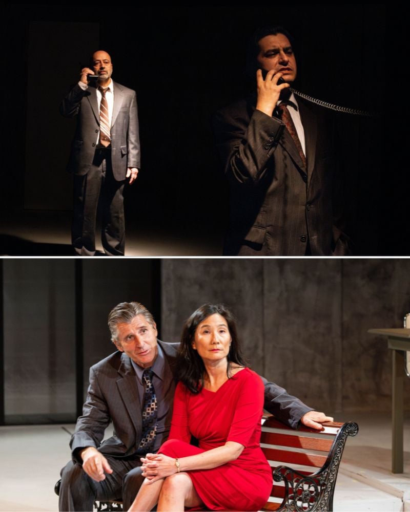 Set design by Kim Leone was deceivingly minimal, just a raised flooring. But then characters roll in tables and chairs, a couch, a desk as settings ranging from an intimate living room to an office and a restaurant.